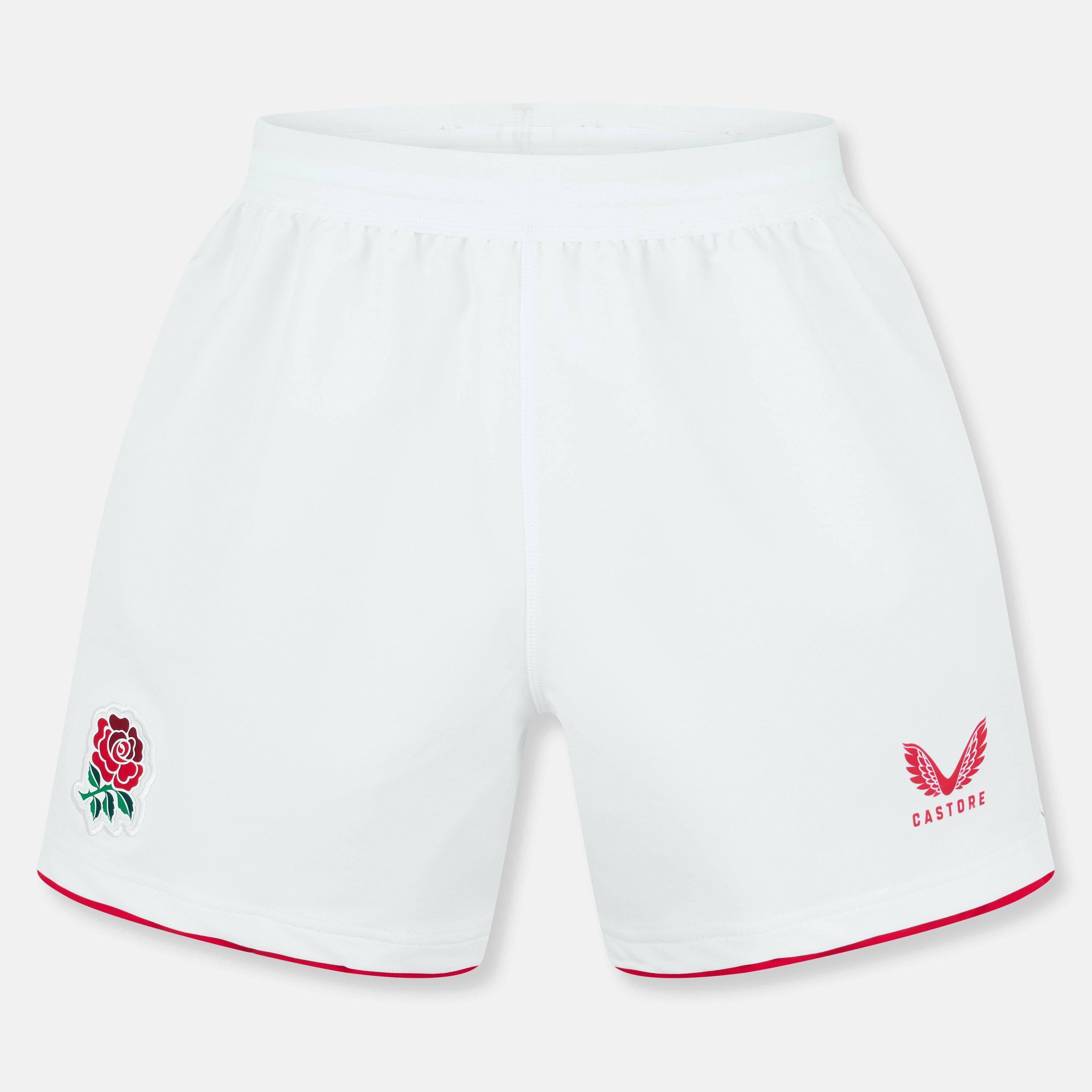 Vertrete die Roten Rosen stilvoll mit den Castore England Home Shorts 2025 2026. Entworfen in einer klassischen weißen Farbgebung, verfügen die Shorts über einen elastischen Bund mit einem inneren Kordelzug für eine bequeme Passform. Abgerundet mit dem Rosenwappen am rechten Oberschenkel für ein ikonisches Finish, sind diese Shorts perfekt für Spieltage, Trainingseinheiten oder zum Entspannen mit einem sportlichen Touch.
