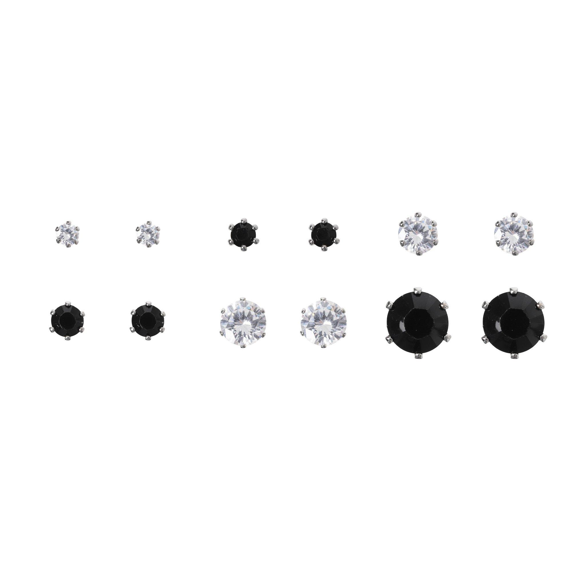 6 Paar gemischte Ohrringe, schwarz und Kristall