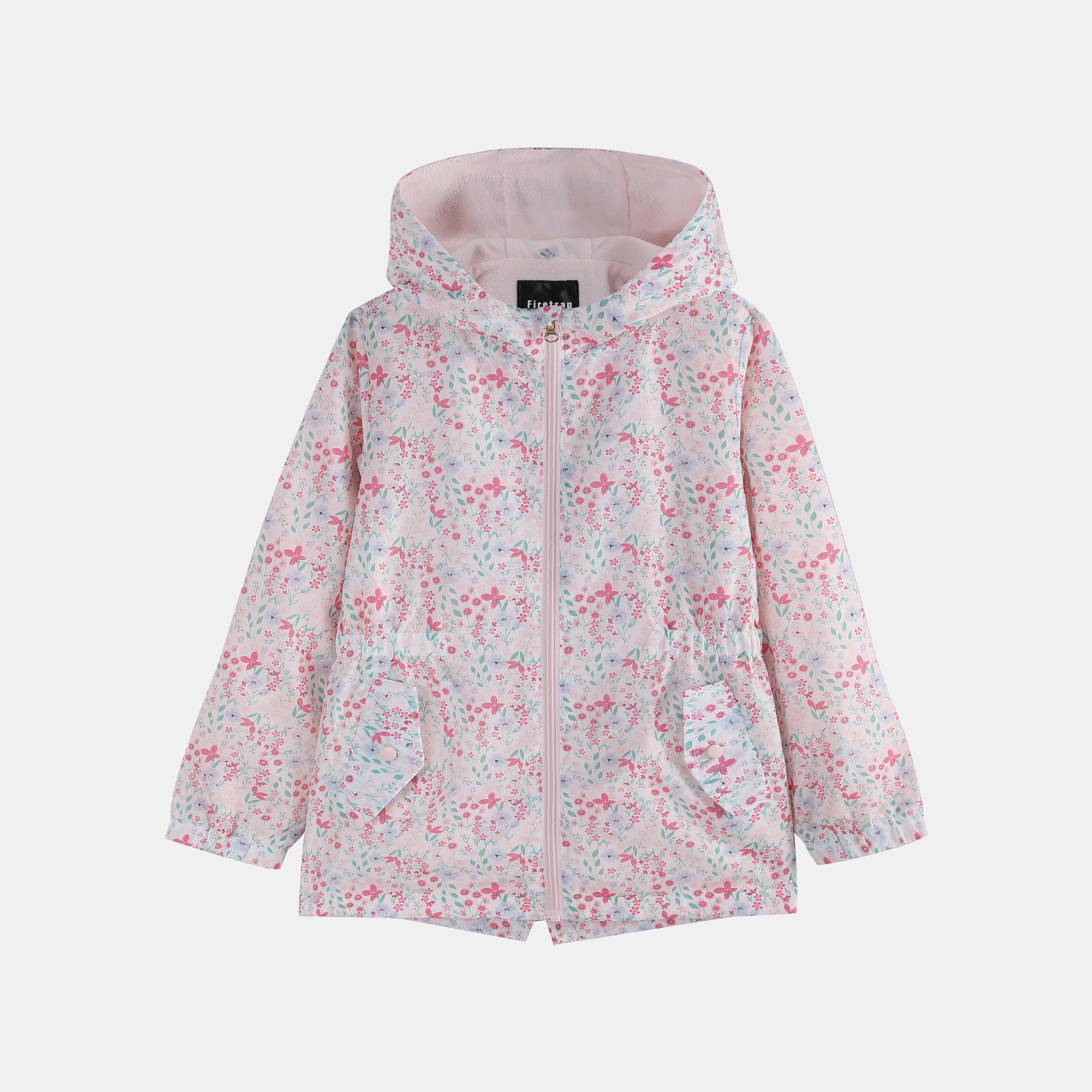 Firetrap Kids Enchanted Blossom Pink Floral Water Resistant Hooded Long Sleeve Rain Anorak