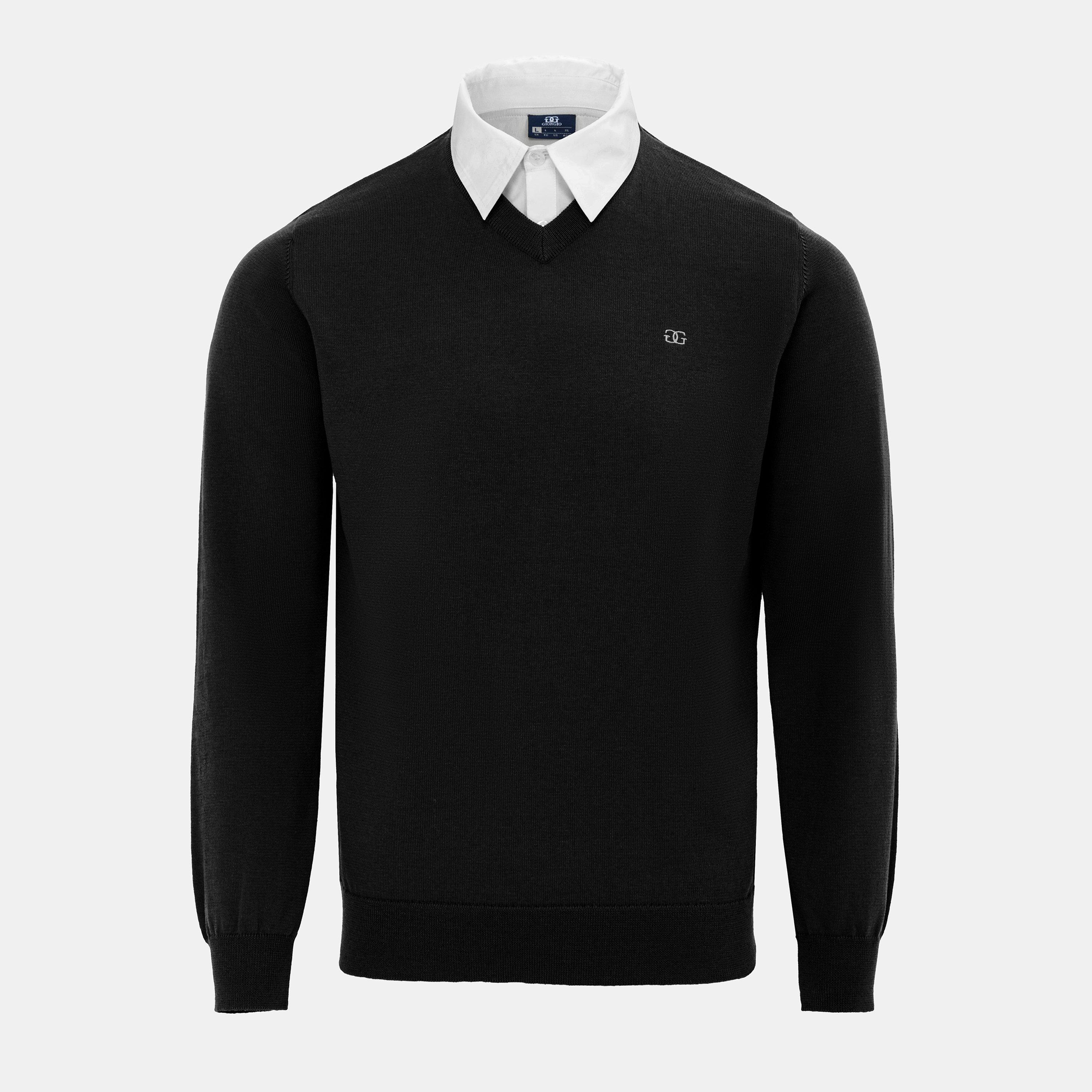 Der Giorgio Mock V-Neck Strickpullover für Herren ist ein elegantes 2-in-1-Essential für mühelosen Stil. Ideal für die Arbeit, Abendessen oder lässige Treffen, entfernt dieser Pullover mit einem integrierten Hemdkragen die Mühe des Schichtens oder Bügelns – perfekt für scharfes, zeitsparendes Ankleiden.