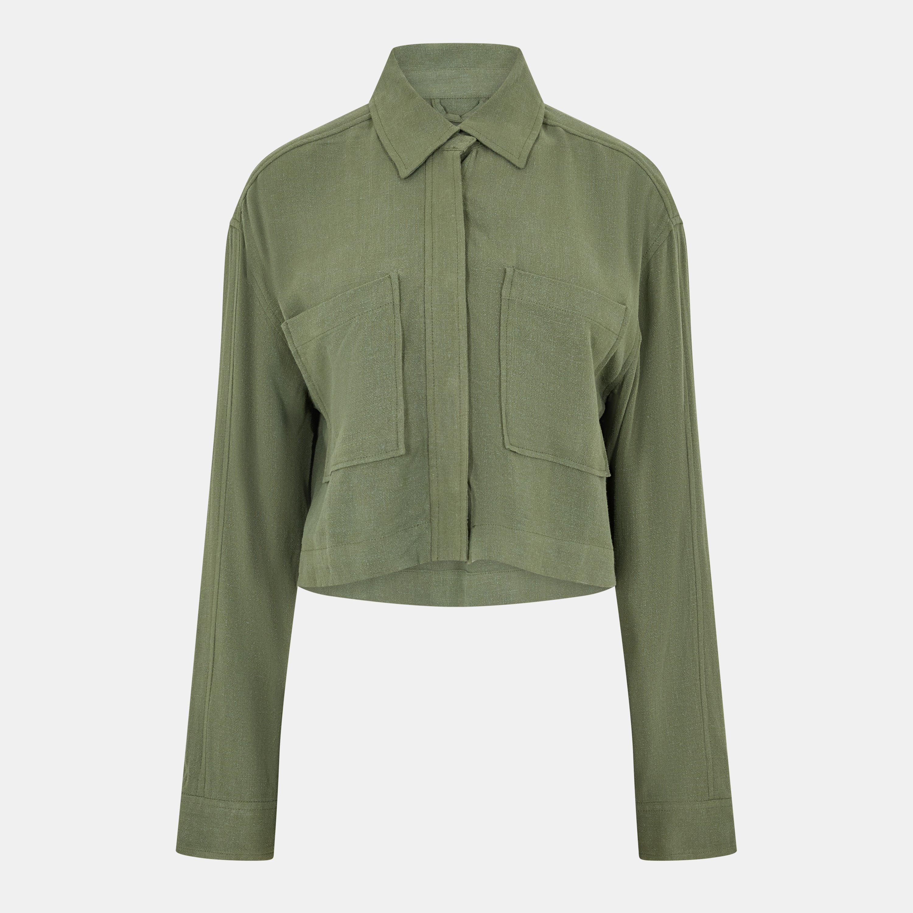 - Atmungsaktives Material sorgt für ganztäglichen Komfort, damit Sie sich den ganzen Tag kühl und frisch fühlen. Mit Patchtaschen auf der Brust, die ausreichend Stauraum für kleine Essentials bieten, ist dieses cropped Overshirt perfekt für unterwegs, während die langen Ärmel und der klassische Kragen eine zeitlose Silhouette schaffen, die mühelos für jeden Anlass gestylt werden kann.