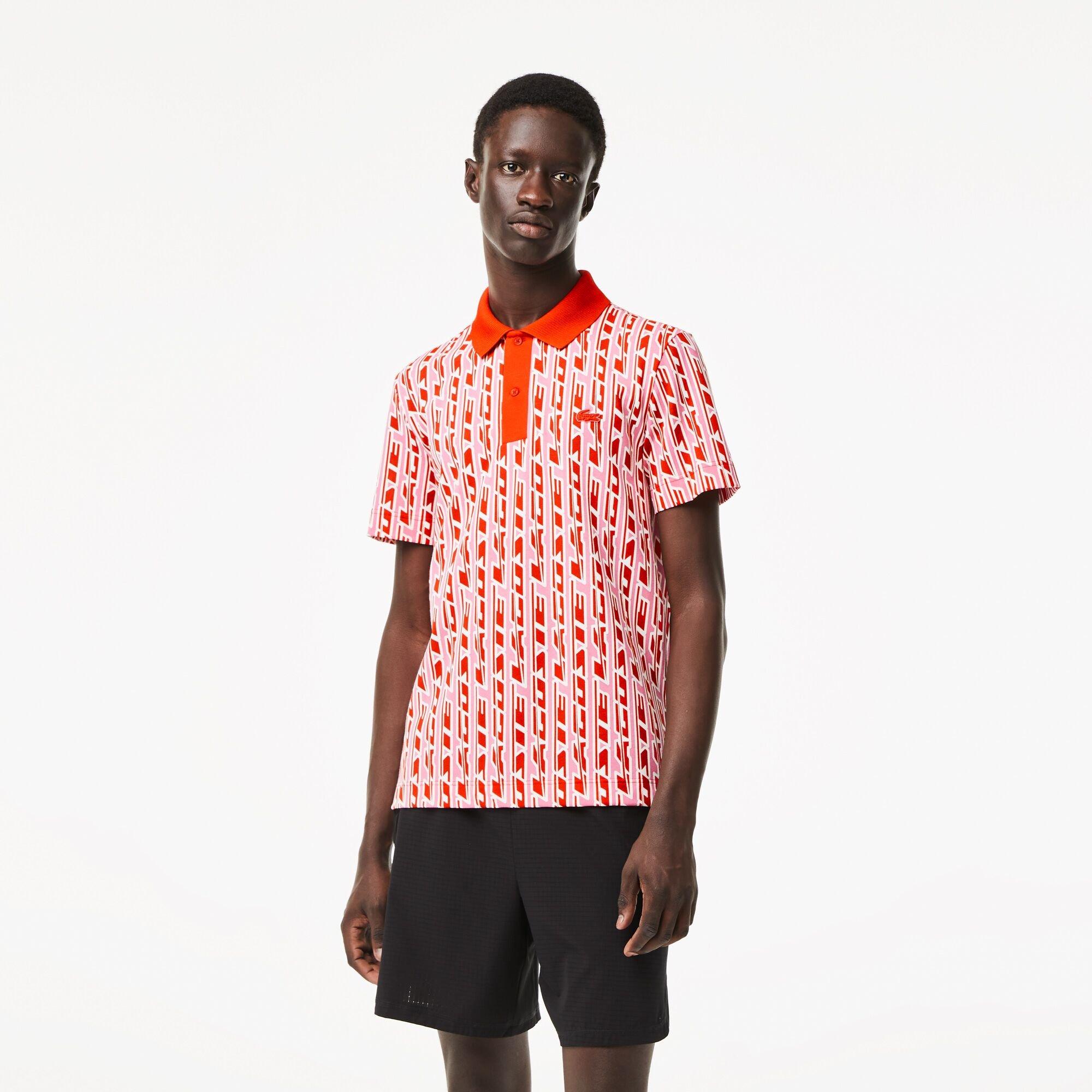 Klassische Sportbekleidung trifft auf zeitgenössisches Design im bedruckten Kurzarm-Polo-Shirt von Lacoste, das mit Krokodil-Details und einem modernen Muster-Finish ausgestattet ist.