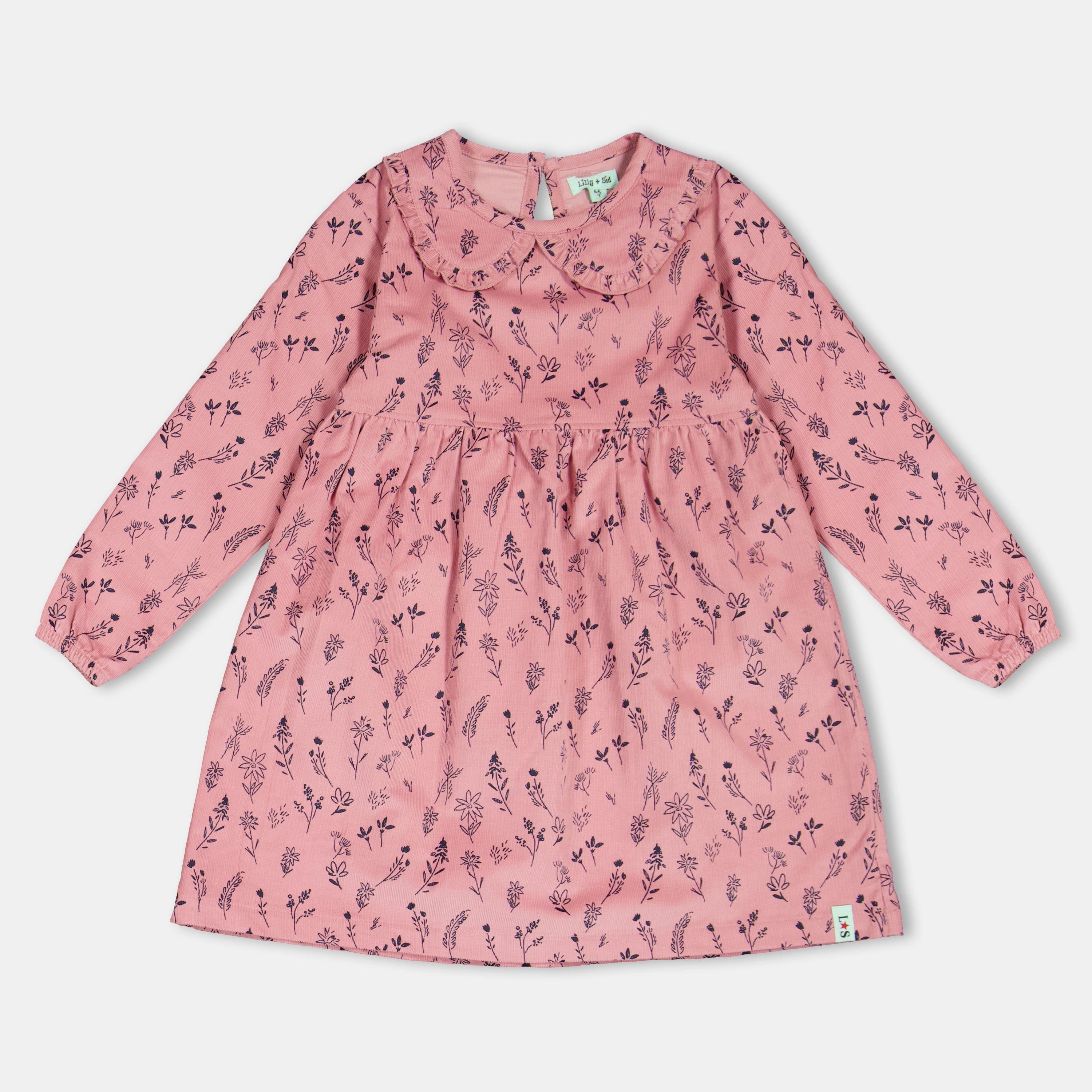 Lilly und Sids Blumenkleid in A-Linie verfügt über eine A-Linien-Form aus weichem, strukturiertem Stoff mit zarten Blumenmotiven, die ein charmantes Grundelement für die Kindergarderobe darstellen.