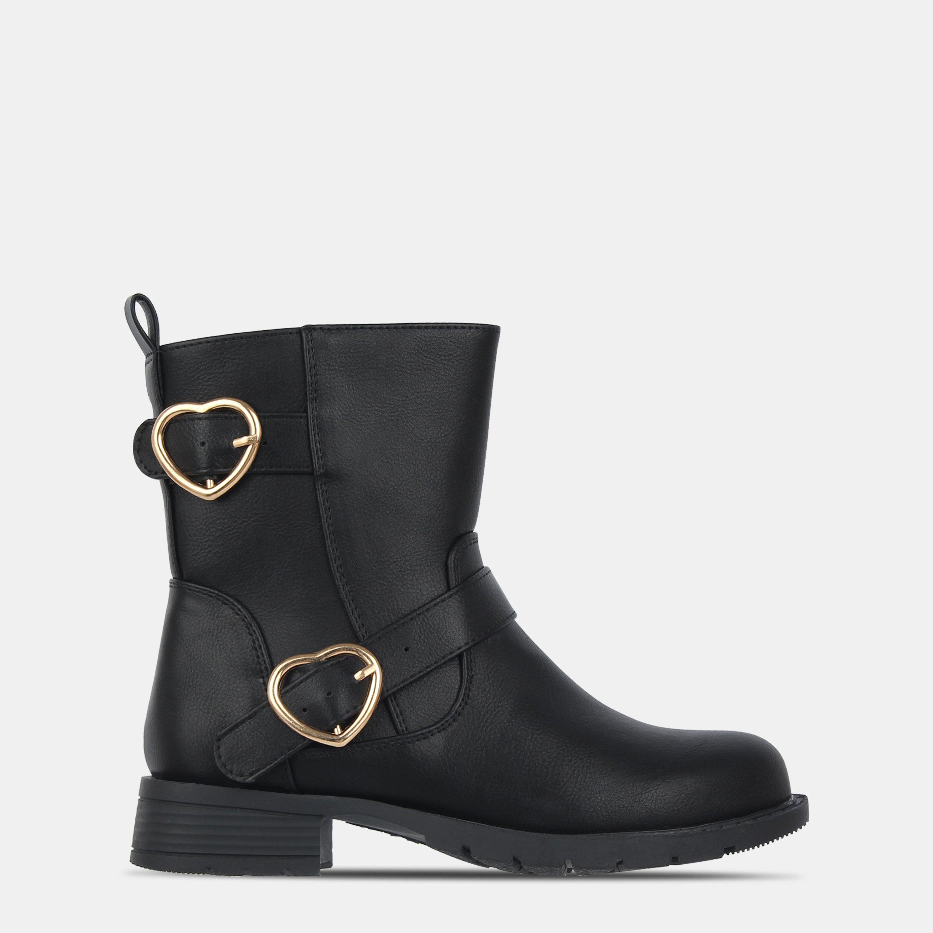 Die Kids Miso Bella Biker Boots sind perfekt für den Schulanfang und verfügen über einen seitlichen Reißverschluss für einen sicheren und bequemen Sitz. Ein Riemen mit Schnallenverschluss und ein falsches Reißverschlussdetail vervollständigen den Look.