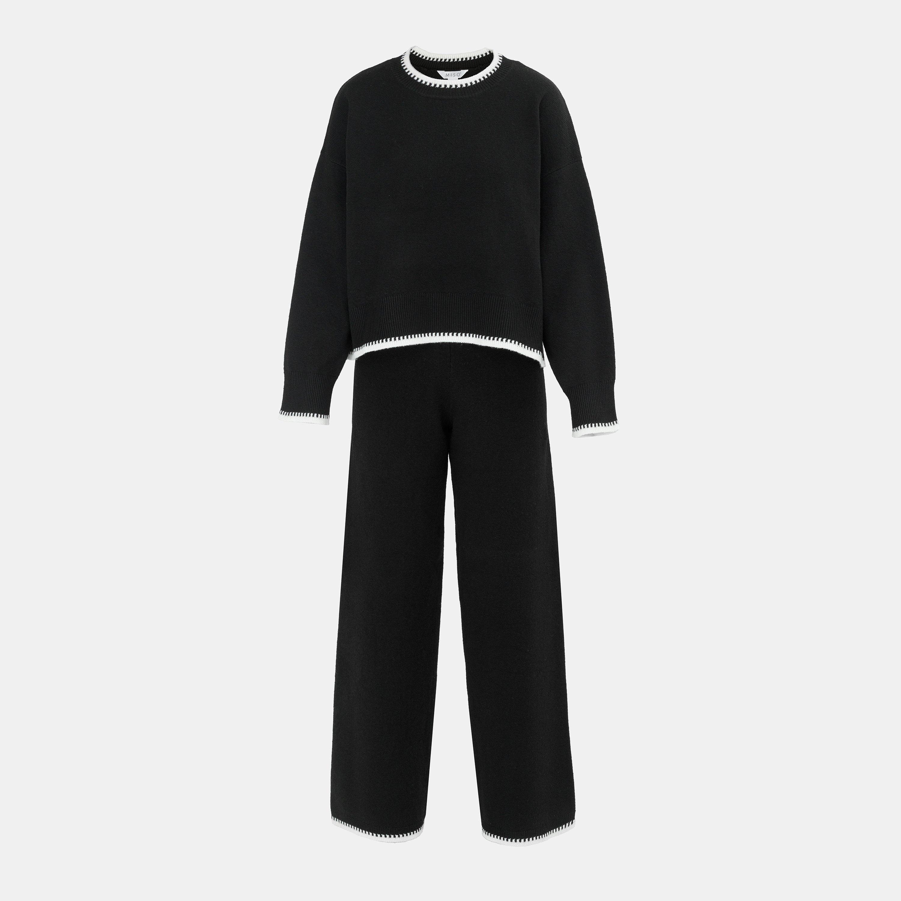 Feature: Die langärmligen Strickpullover mit Rundhalsausschnitt, überschnittenen Schultern, kontrastierenden Nähten und weit geschnittenen Hosen. Ein Muss in Ihrem Kleiderschrank!