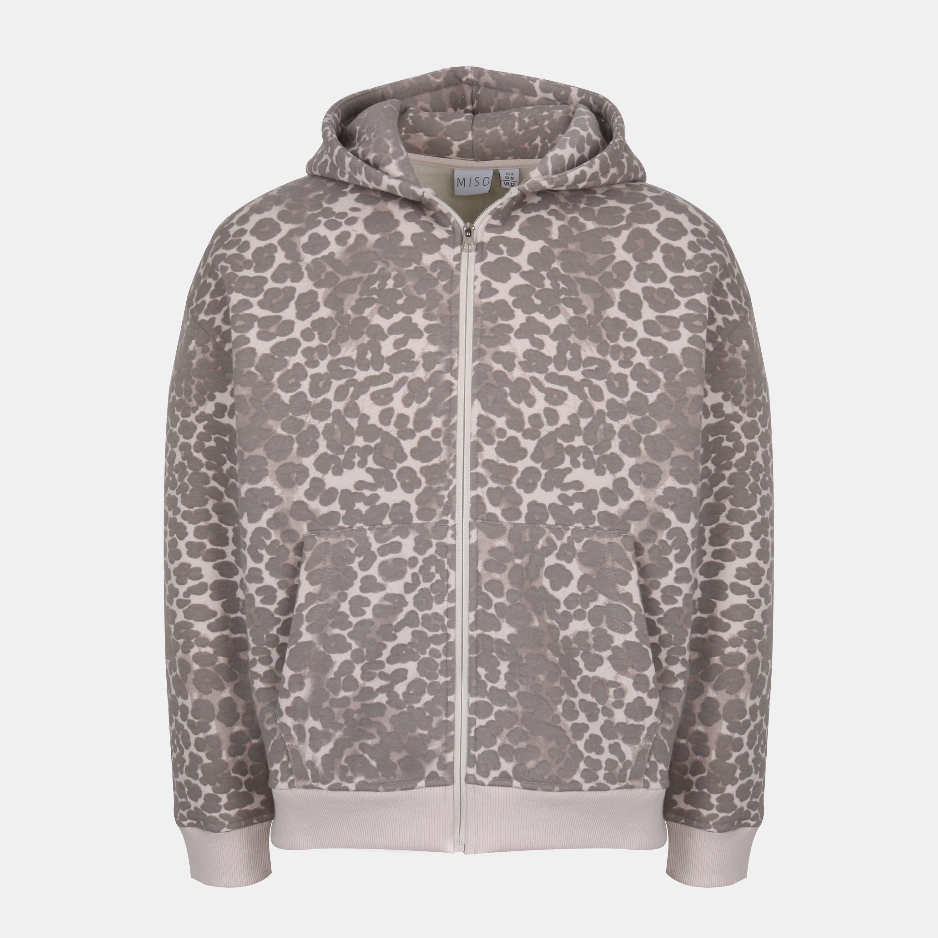 Miso's Leopard Full-Zip Fleece-Jacke kombiniert Komfort mit einem auffälligen Muster und verfügt über einen durchgehenden Leopardenprint auf weichem Stoff. Der durchgehende Reißverschluss ermöglicht ein einfaches Anziehen und präsentiert das Design.