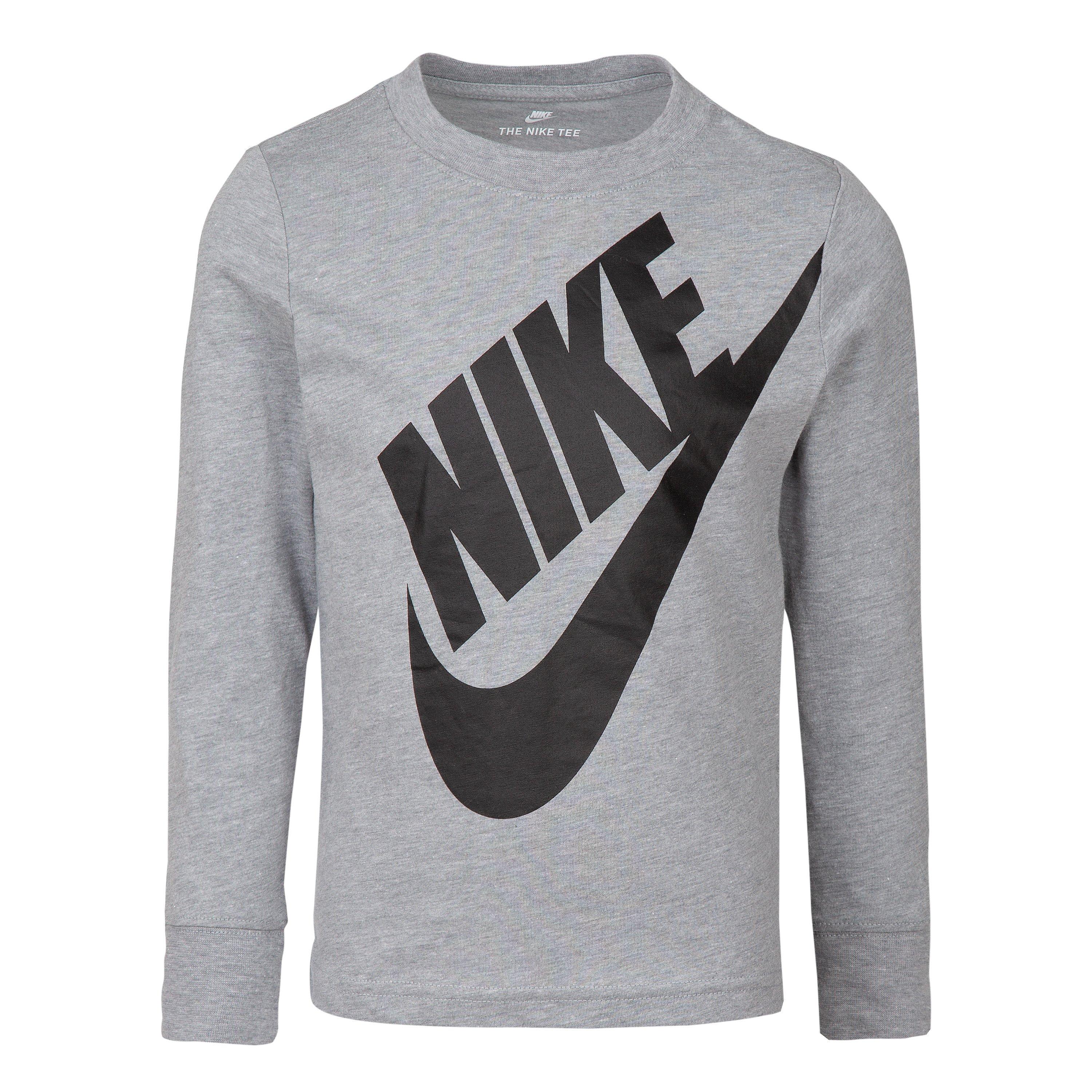 Halten Sie den lässigen Stil mit dem Nike Kids' Jumbo Futura Langarm-T-Shirt in Reichweite. Mit einem lockeren Schnitt und verlängerten Ärmeln für den täglichen Gebrauch gebaut.