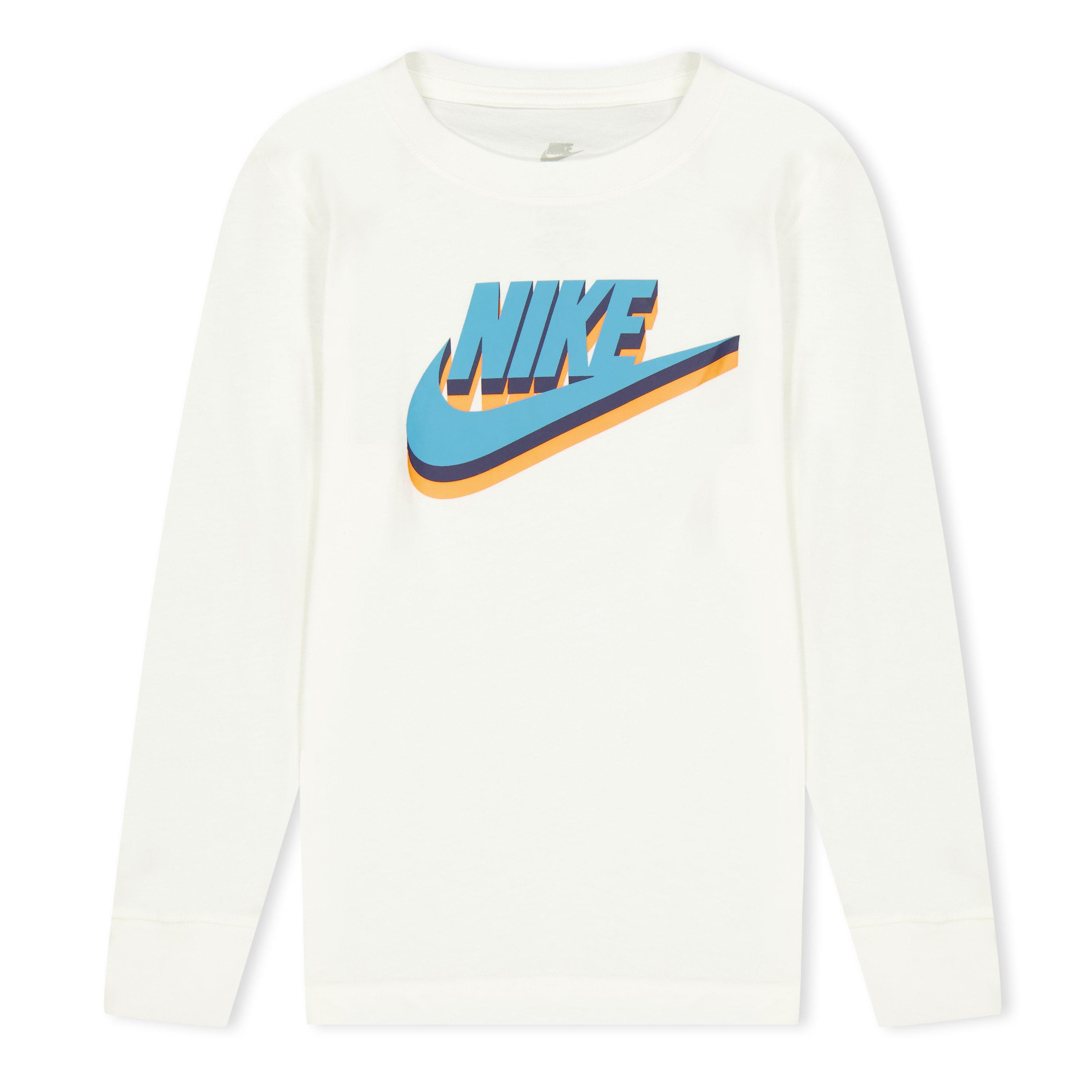 The Nike Kids' Texture Future Long Sleeve T-Shirt is designed for everyday wear. The relaxed fit maintains a clean, easy-to-style profile.