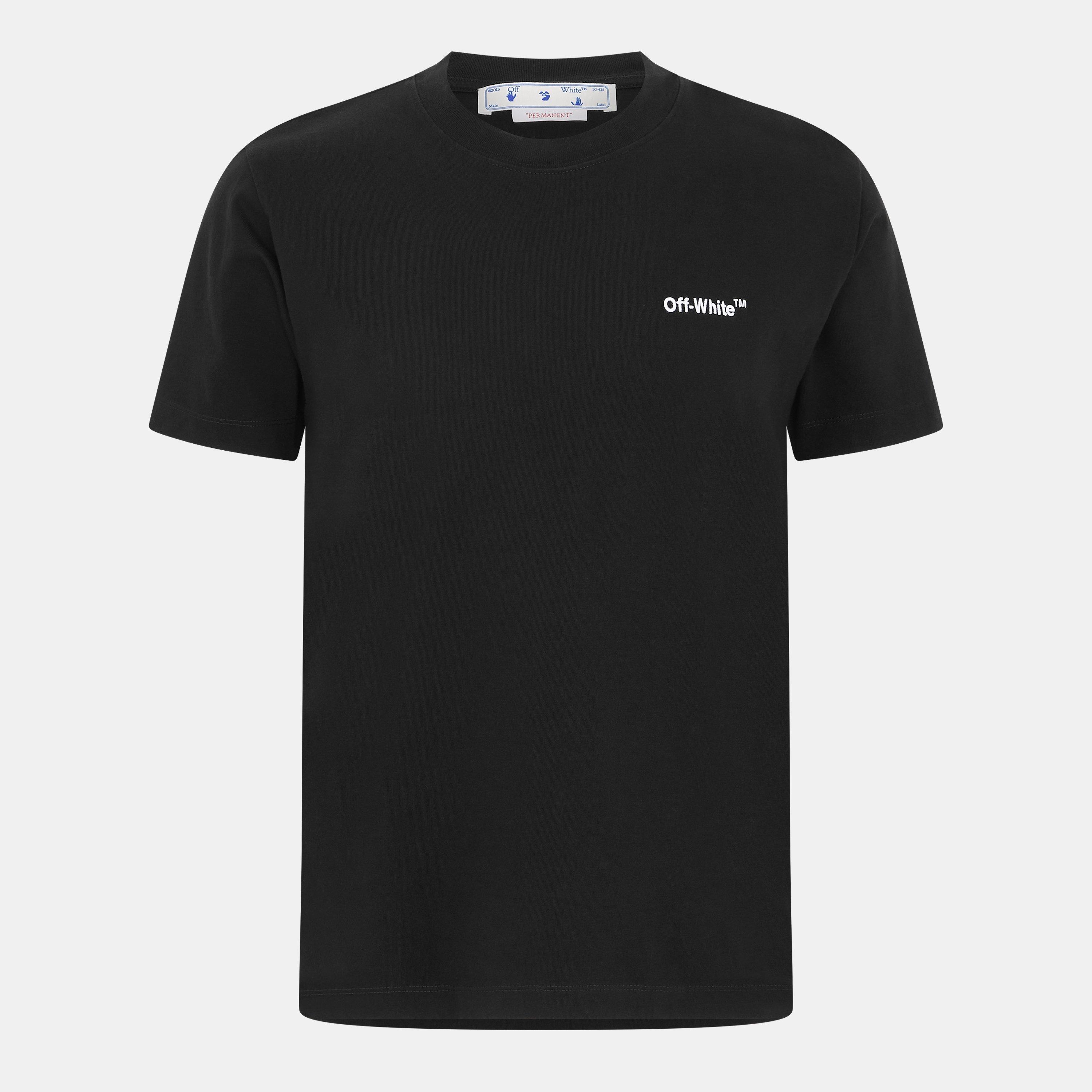 Das Off-White Helvetica Logo T-Shirt verfügt über kurze Ärmel und eine Helvetica-Typografie-Branding auf der Vorderseite. Das Design behält ein schlankes Profil für den täglichen Gebrauch bei.