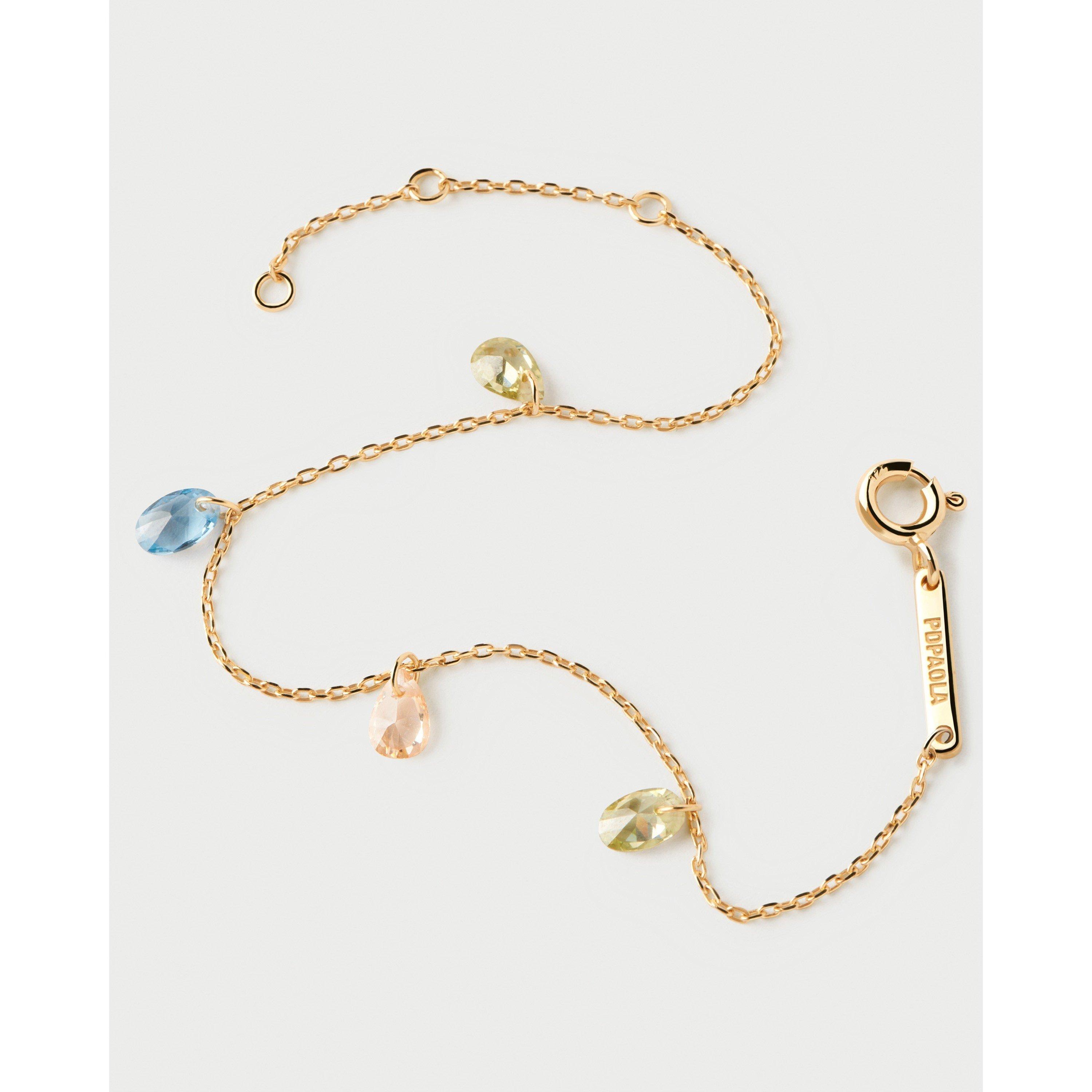 Vergoldetes zartes Armband mit vier mehrfarbigen Zirkonia-Tropfenvorhängern