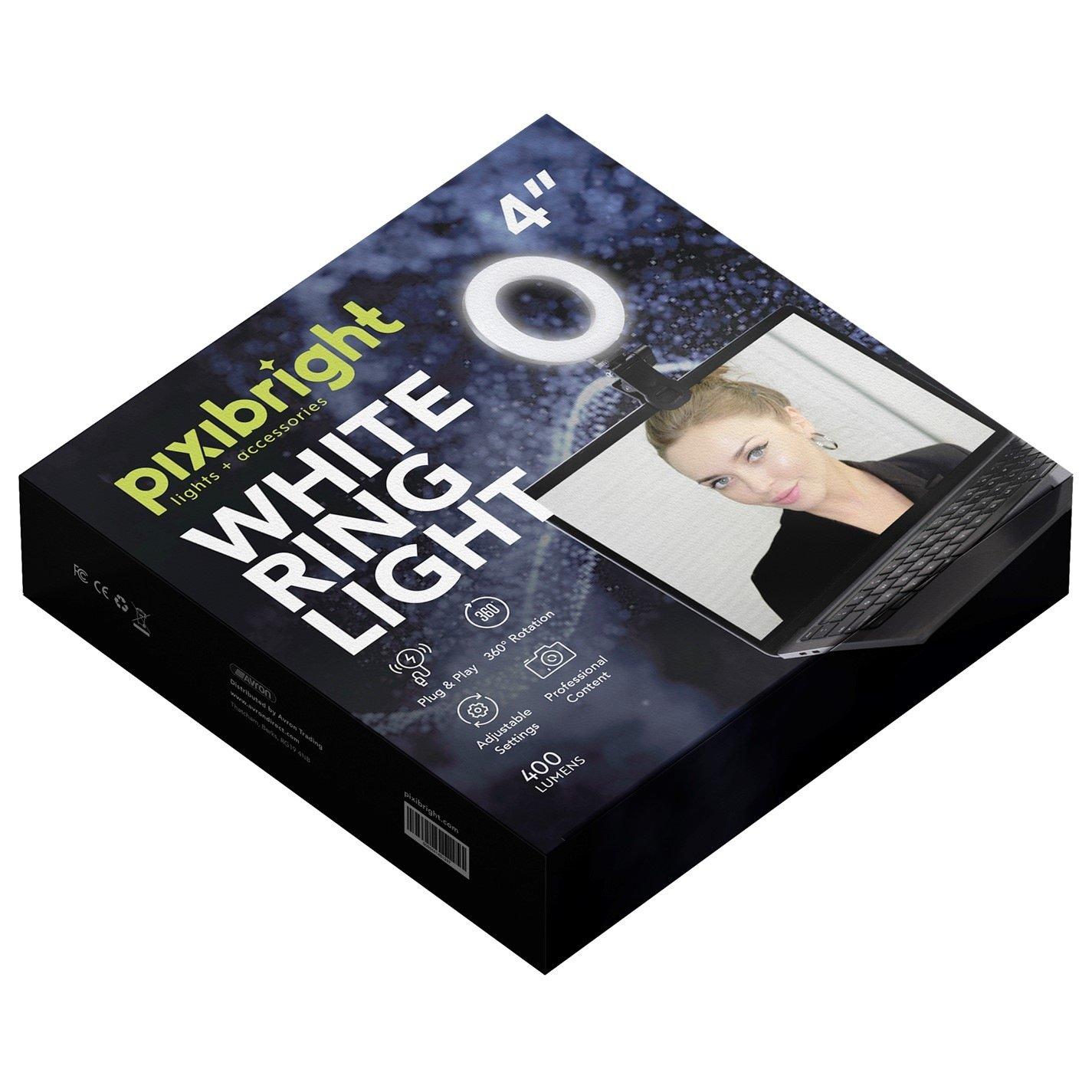 Der Pixibright Pixibri White Ring Light Selfie Stick kombiniert Beleuchtung mit Positionierung für Fotografie und Videoinhalte. Mit dualen weißen und gelben Modi, die 400 Lumen liefern, verwaltet dieses Unisex-Design Schatten und erhält Details für die Make-up-Anwendung, Videoanrufe und Inhalte von Kreativen.