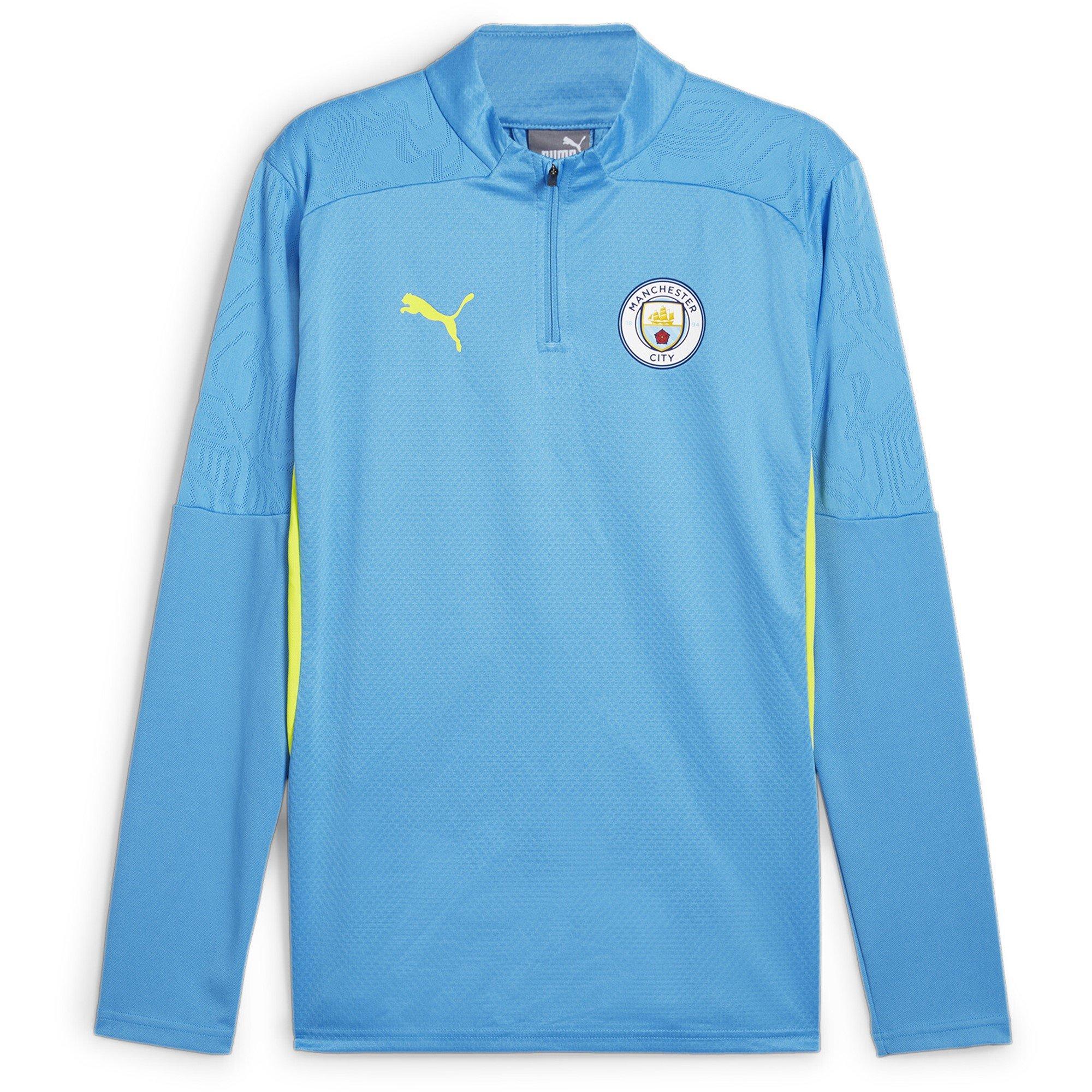 Mit langen Mesh-Ärmeln für Atmungsaktivität und einem Viertelreißverschluss für einfaches An- und Ausziehen präsentiert dieses ikonische hellblaue Oberteil stolz das Teamabzeichen und das Puma-Branding auf der Brust und strahlt gleichzeitig Teamstolz und Stil aus. Egal, ob Sie auf dem Feld trainieren oder von der Seitenlinie aus anfeuern, das Puma Manchester City Training Drill Top ist Ihr ultimativer Begleiter.