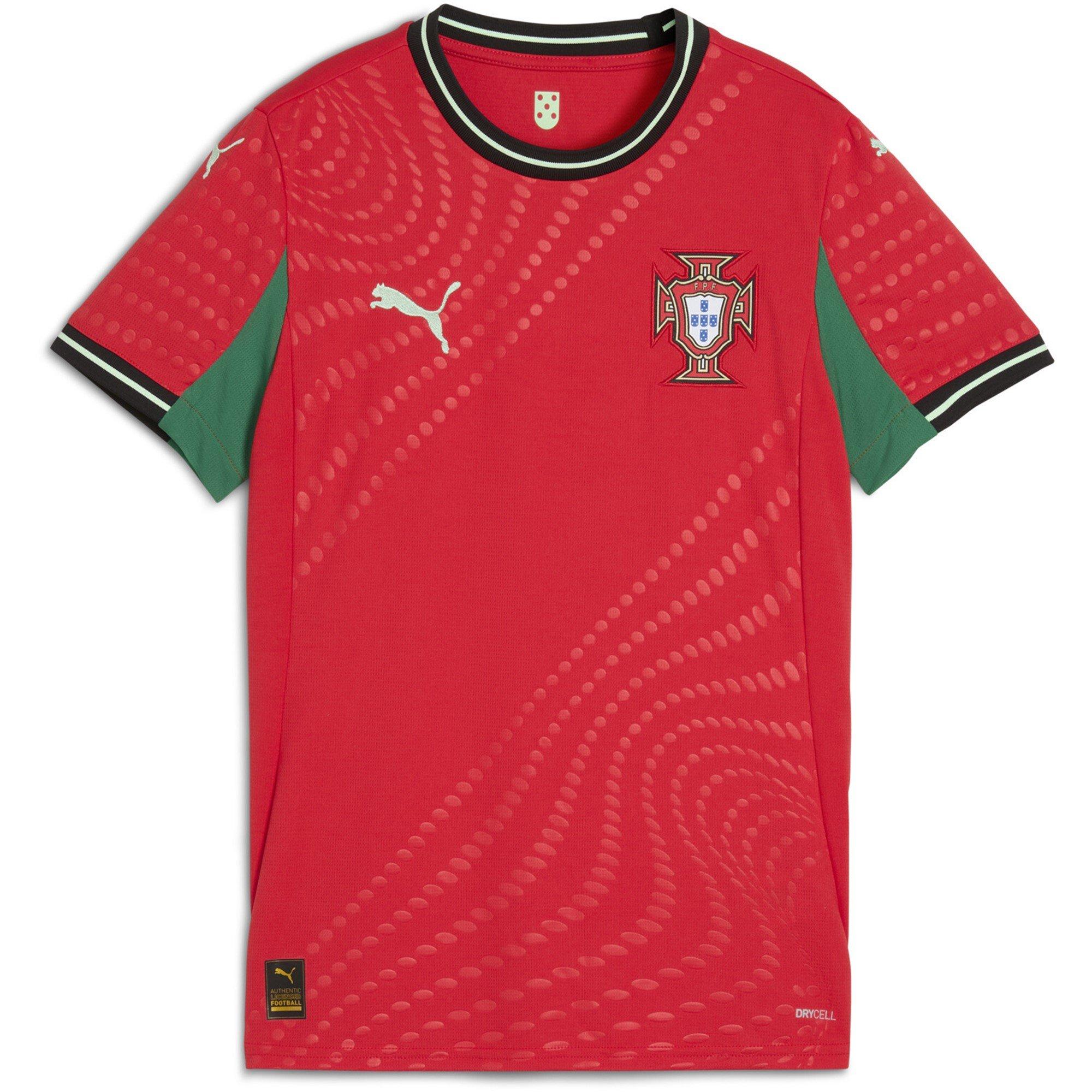 Zeigen Sie Ihren nationalen Stolz mit dem Puma Portugal Heimtrikot 2025. Entworfen in der klassischen roten Farbgebung des Teams, ist dieses Trikot mit der dryCELL-Technologie ausgestattet, um Sie während jedes Spiels und Trainings kühl und trocken zu halten. Abgerundet mit dem ikonischen Wappen der Nationalmannschaft auf der Brust, ist es perfekt für Spieltage, Training oder um den portugiesischen Geist stilvoll zu feiern.