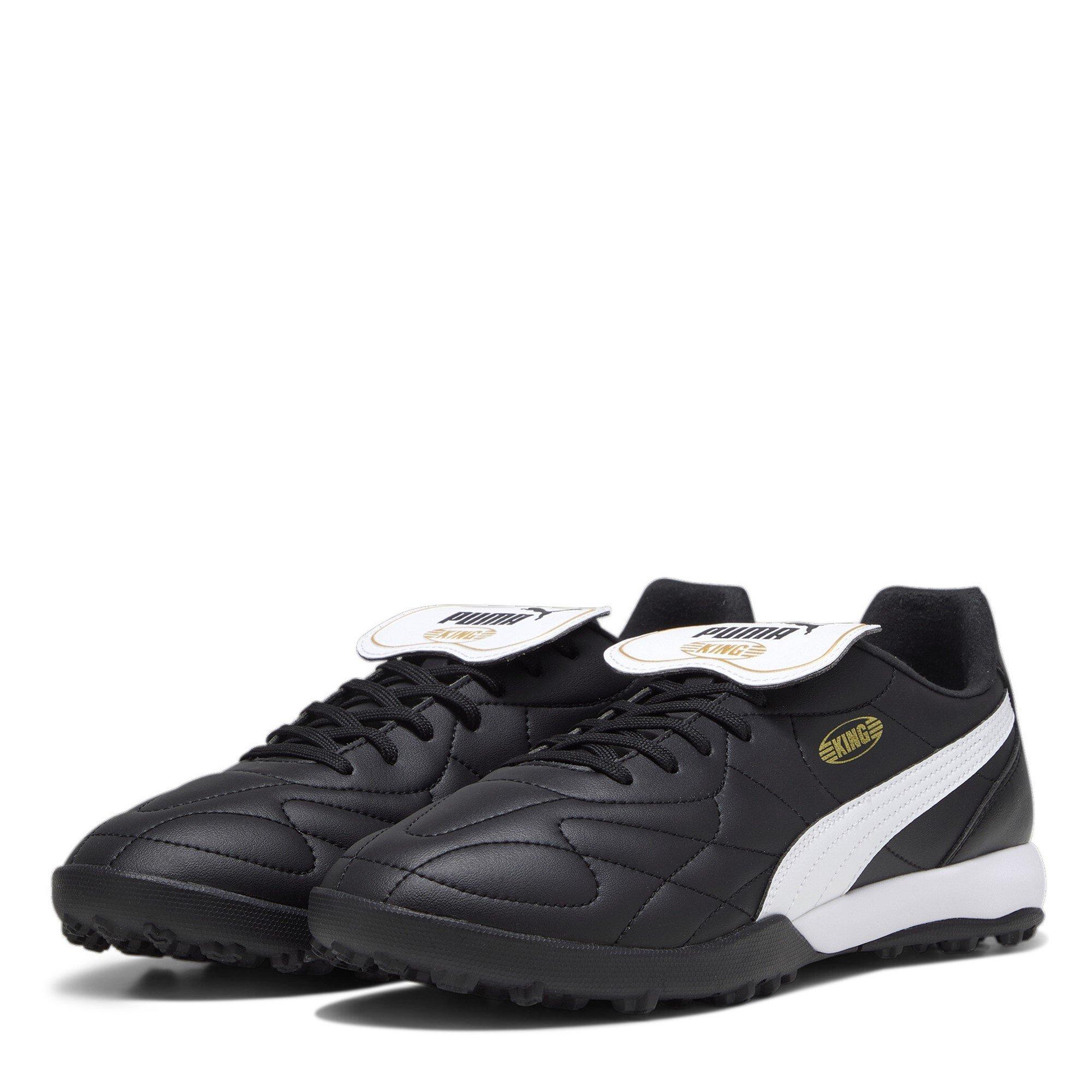 Der KING TOP Astro Turf Fußballschuh von Puma bietet ein klassisches Design mit modernen Leistungselementen. Dieses Fußballschuhwerk verfügt über ein Traktionsmuster, das speziell für künstliche Oberflächen entwickelt wurde, während Pumas Komfort und reaktionsschnelle Kontrolle Ihre Sportleistung verbessern.