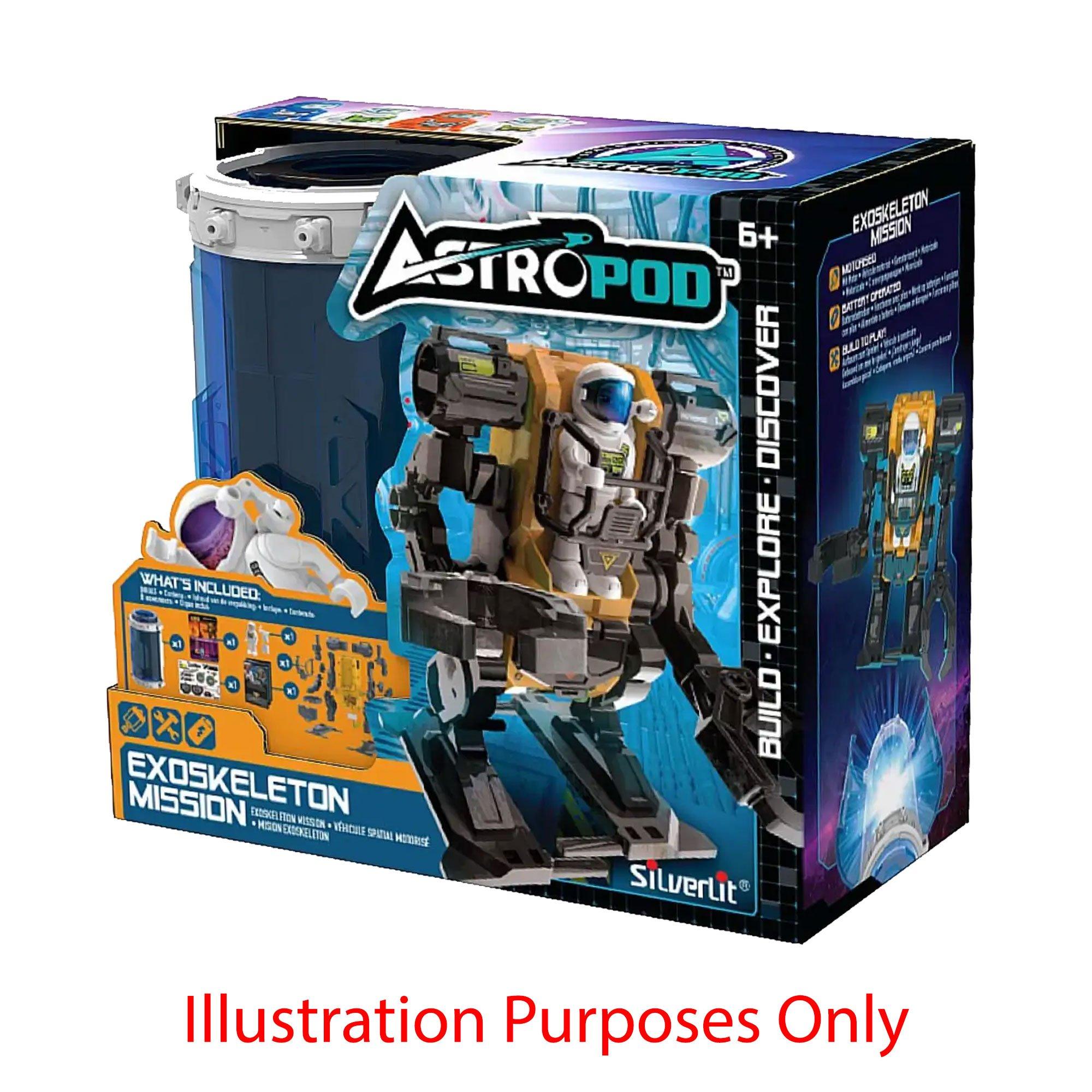 SILVERLIT's Astropod Exoskeleton Mission Action Figure integrates precision articulation with space-inspired design elements. This engaging toy features a poseable exoskeleton that supports varied positioning while maintaining structural integrity for active play adventures designed for children.