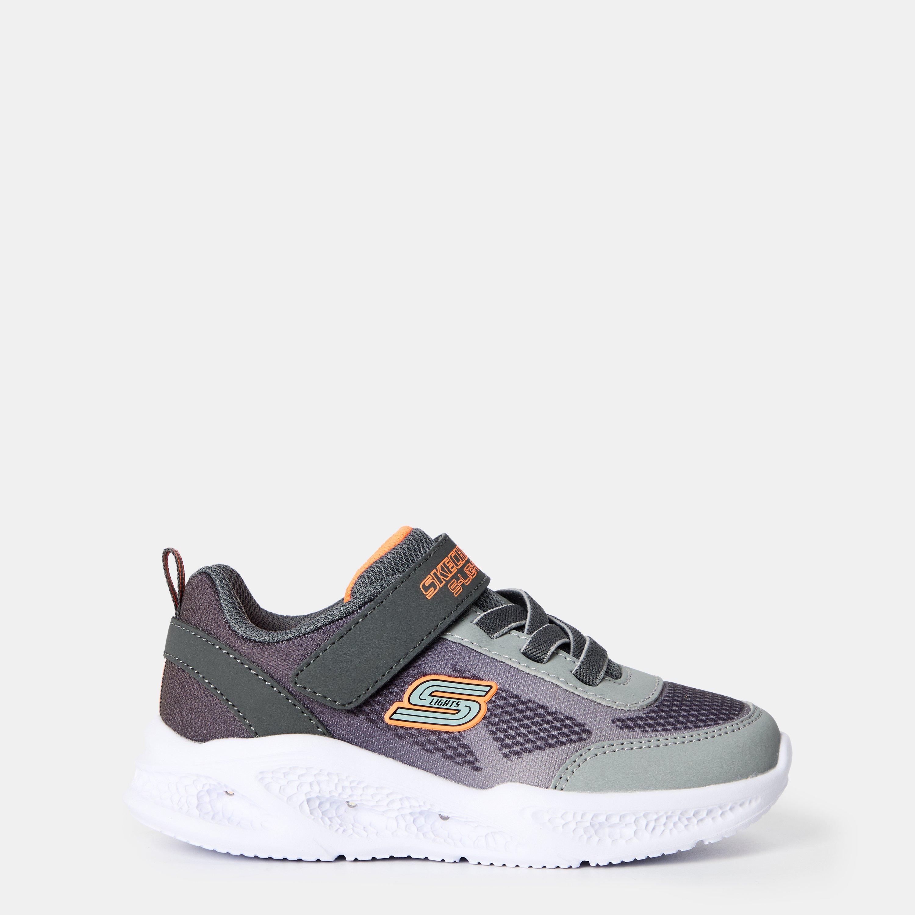 Die Gore- und Riemenleder Leuchttrainer von Skechers für Kinder verfügen über ein leicht zugängliches Design mit einer beleuchteten Sohle. Ein Klettverschluss kombiniert mit einem dehnbaren Gore-Panel sorgt für einen sicheren, verstellbaren Sitz.
