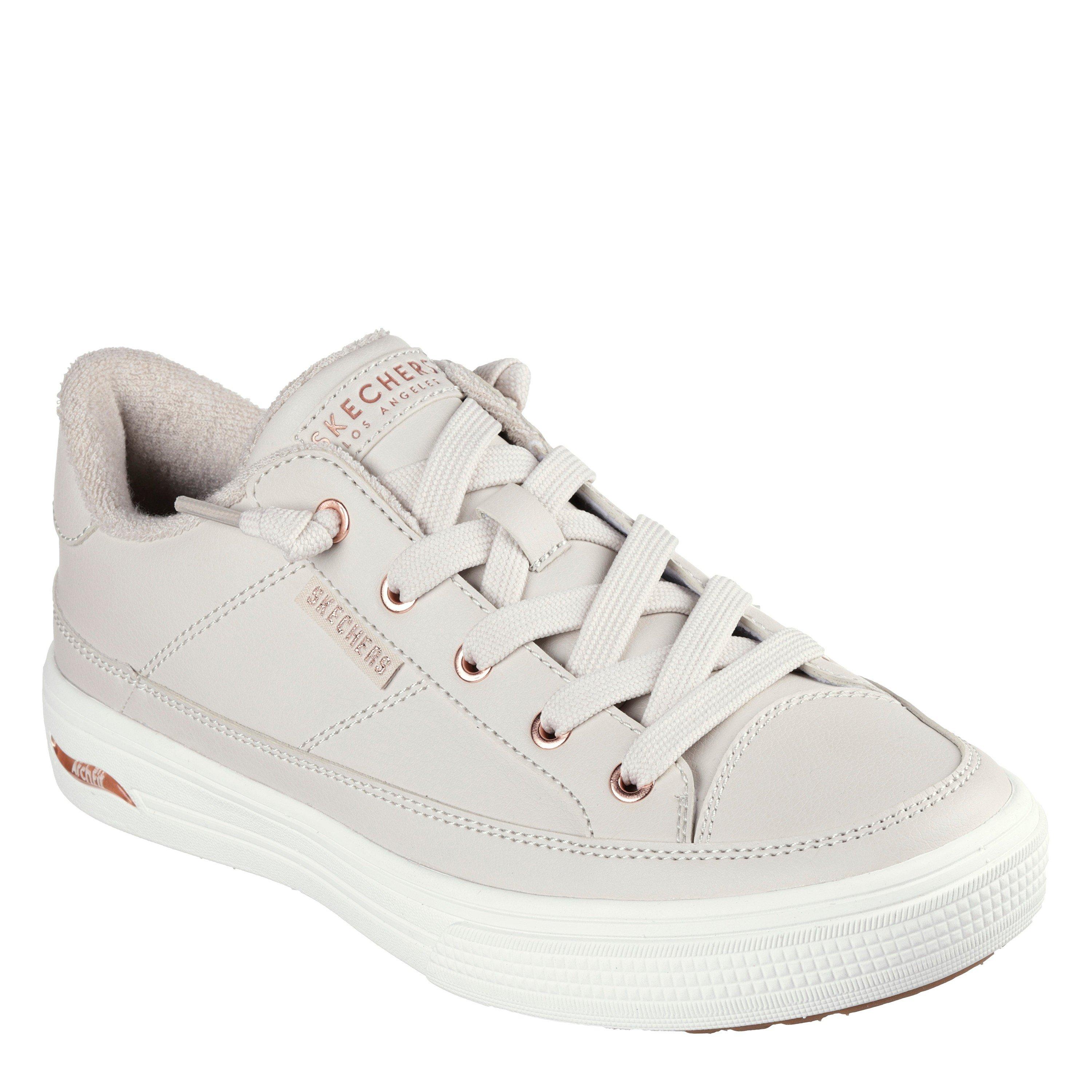 Zeitloser Stil und unterstützender Komfort vereinen sich in Skechers Street™ Arch Fit® Arcade - On My Way. Dieses leicht tragbare Design verfügt über ein Obermaterial aus synthetischem Duraleather mit dekorativen Schnürsenkeln, einer herausnehmbaren Arch Fit® Einlegesohle und einer leichten, gepolsterten Zwischensohle.