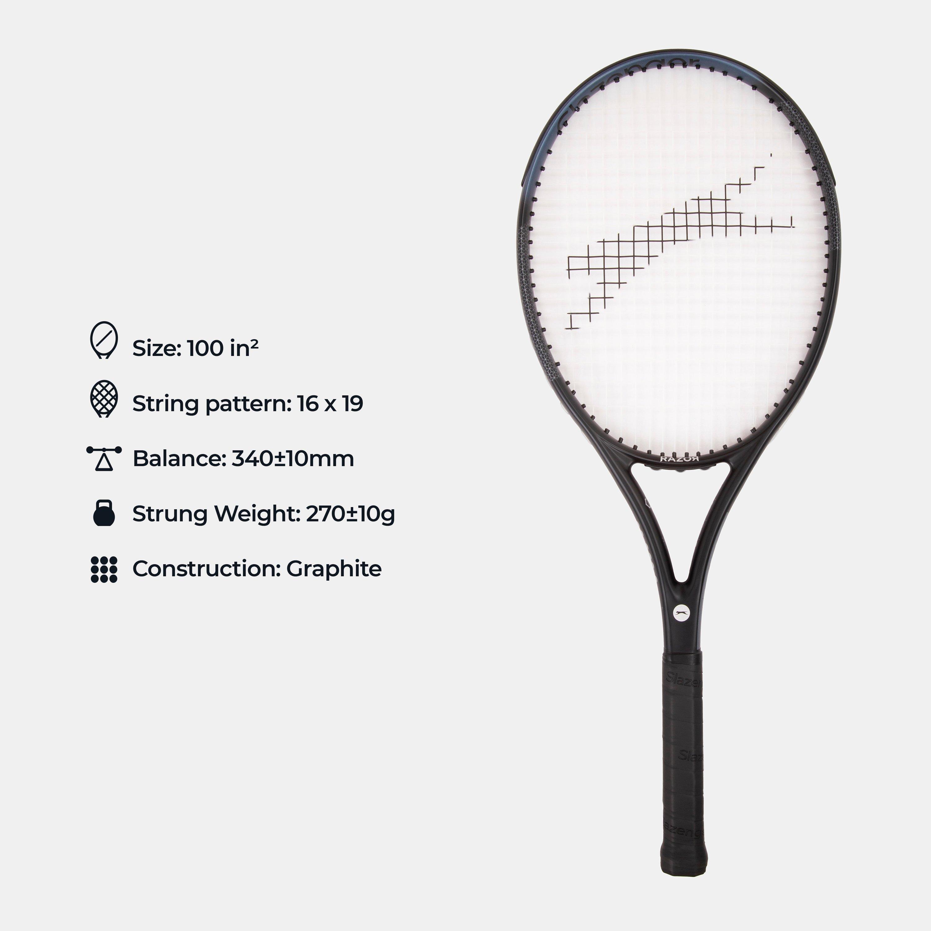 Der Slazenger Razor Tennisschläger verfügt über einen leichten Graphitrahmen mit komfortablem Griff für hervorragende Kontrolle und Leistung und liefert kraftvolle und präzise Schläge.
