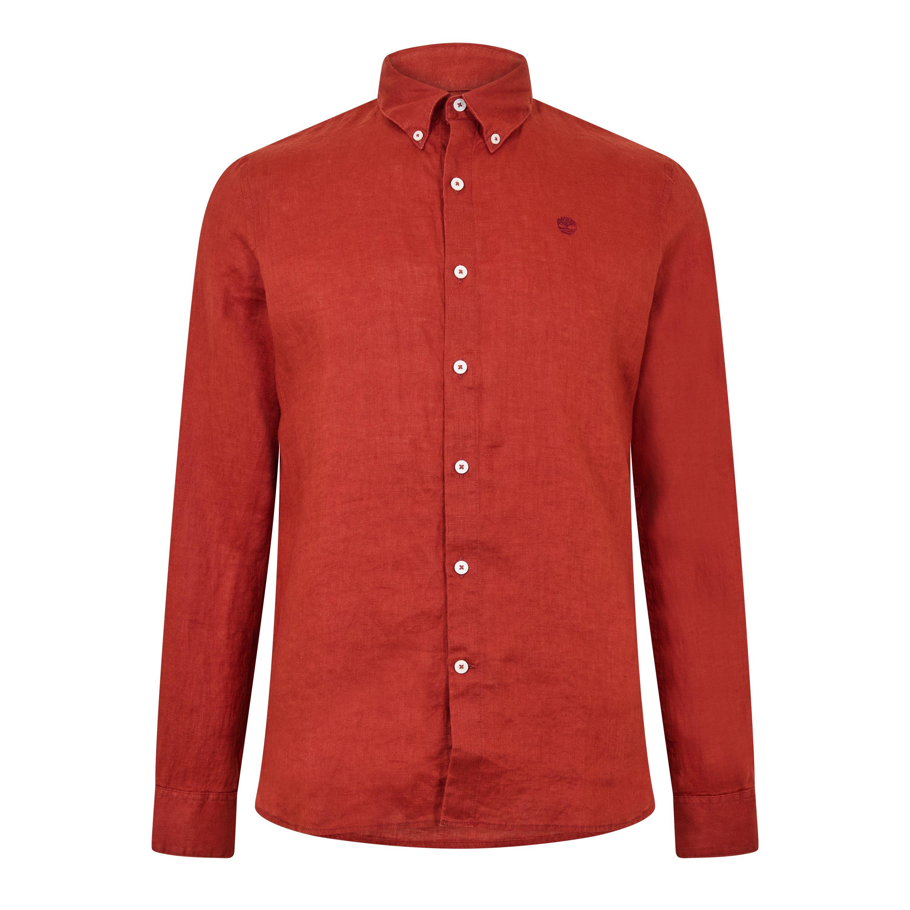 Timberland Men's Mill Brook Linen Leaf Green Long-Sleeve Plain Shirt