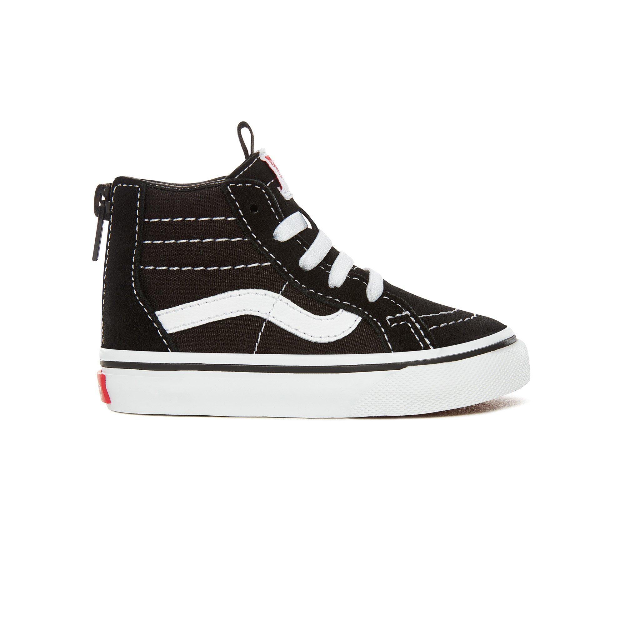Entworfen in einem zeitlosen Schwarz-Weiß-Farbton, mit der ikonischen roten Branding an der Zunge und Ferse, um einen definitiven Stil zu schaffen. Ob Ihr Kleinkind an einer Familienveranstaltung teilnimmt oder einen Tag im Park genießt, die Vans SK8-Hi Zip Schuhe sind das perfekte Fußaccessoire, um sie zu begleiten.